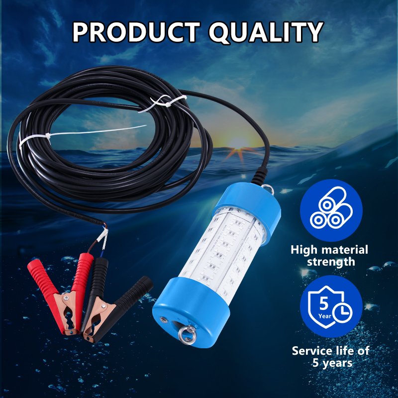 - Place the fishing light in a suitable position underwater, and connect the DC12V supply to light it up.