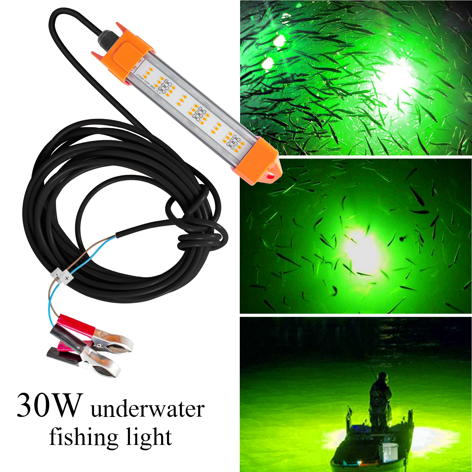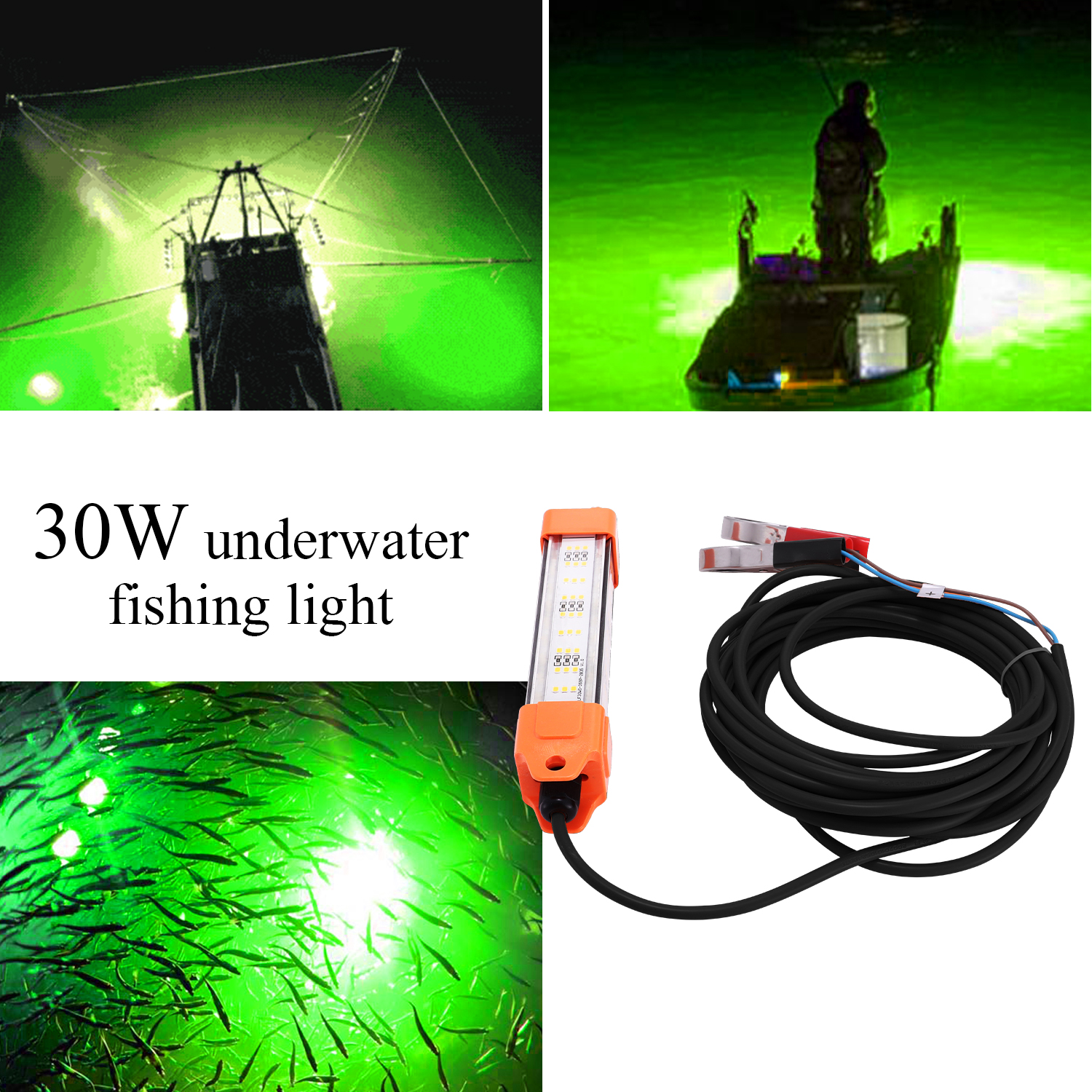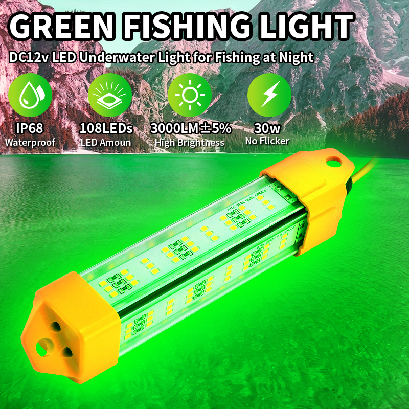New Led Fishing Lamp 30W Underwater Green Fish Light Lights IP68